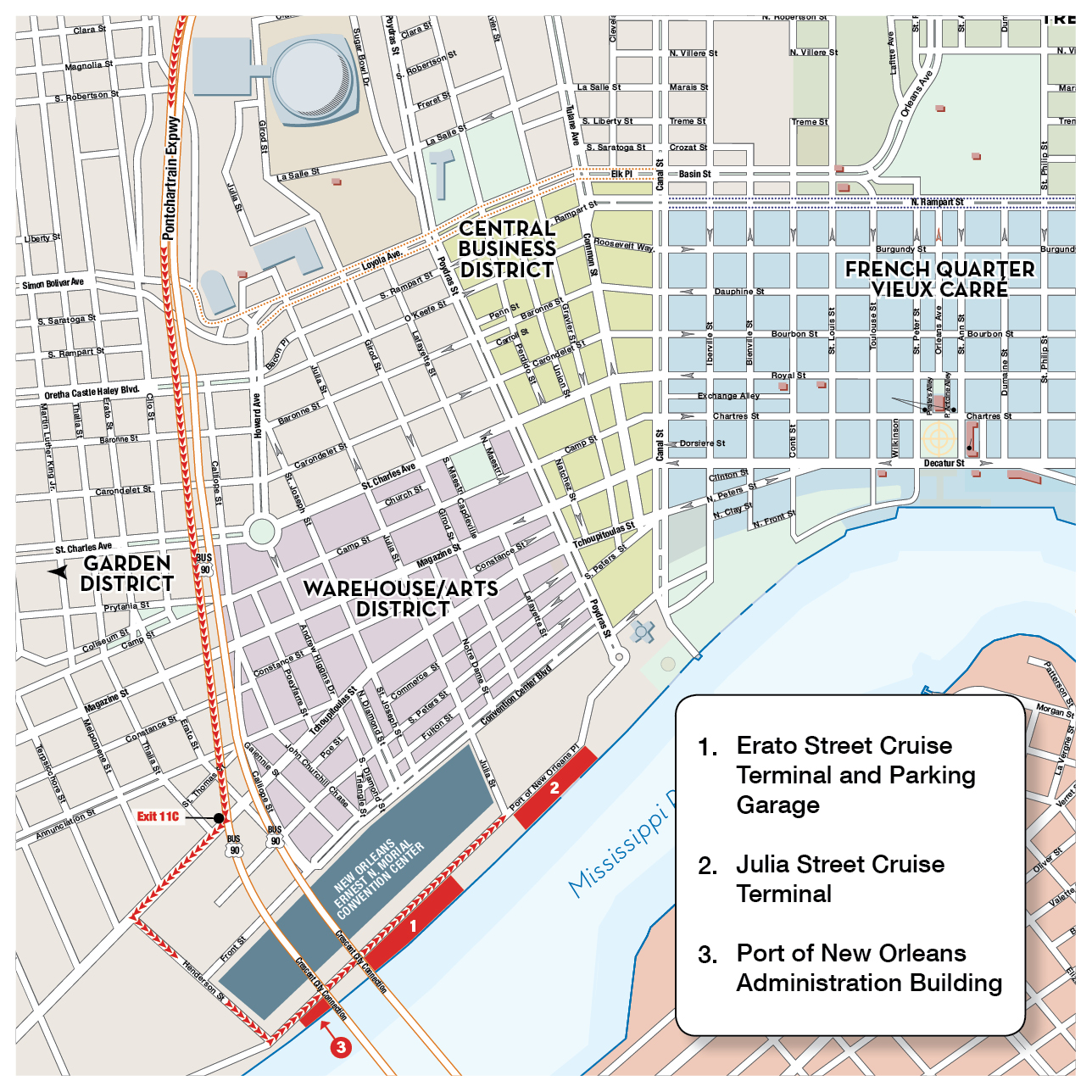 New Orleans (Louisiana) cruise port map (printable) | Cruise port